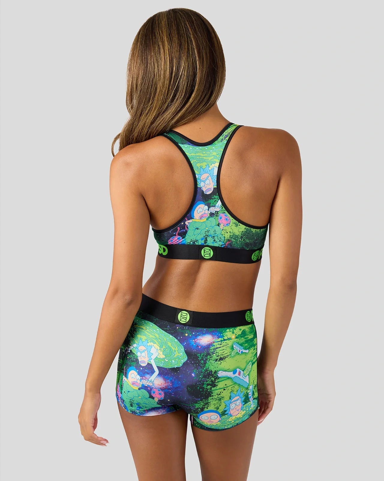 Get lost in the multiverse. The Portal Void Sports Bra from Rick and Morty x PSD is made from a silky poly blend that’s breathable yet slightly compressive, bringing you the comfort and support you need for everything you get into.